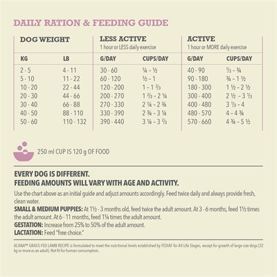 Zelfs de kieskeurige eters zullen verleid worden door dit heerlijke voer van Acana! Dit voer bestaat uit 50% gras gevoerde lam, die vers gebruikt is in de voeding. Door de infusies van gevriesdroogde lever zal zelfs de meest kieskeurige eter fan zijn van dit voer. De toevoeging van appel, nootmuskaat en pompoen ondersteunen de spijsvertering, wat het voer ook geschikt maakt voor gevoeligere honden. Dit voer bestaat uit 60% dierlijke ingrediënten en 40% uit fruit, groenten en kruiden, om dicht bij de natuur te blijven. Rijk aan eiwitten uit maar één soort vlees!