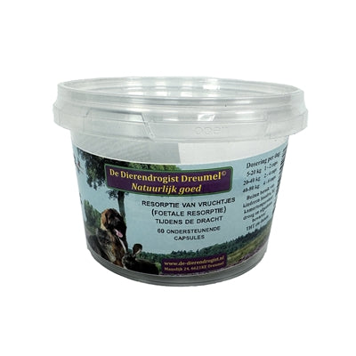 De Dierendrogist Resorptie Van Vruchtjes Foetale Resoptie is een ondersteunend supplement dat kan bijdragen aan een betere doorbloeding van de baarmoeder om het hormoonsysteem in balans te houden, en resorptie van vruchtjes te helpen voorkomen.