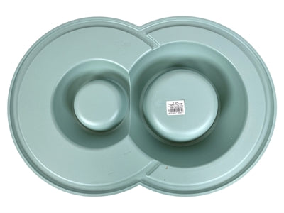 De Happy Pet Mad About Pets Voerbak/Drinkbak Volcano Dubbel Salie Groen 230/600 ml is een dubbele voer- en drinkbak met flexibele mat. De bakken zijn in de mat geïntegreerd, waardoor het geheel eruit ziet als een soort dubbele vulkaan. De binnen-bakjes van plastic zijn uit de mat te verwijderen, om het geheel goed schoon en droog te kunnen maken. De Volcano dubbele voer- en drinkbak van Happy Pet heeft een mooi ontwerp en is uitgevoerd in de kleur salie groen.