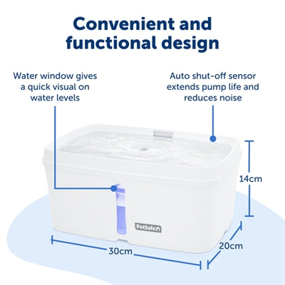 De PetSafe Viva Drinkfontein met een inhoud van 4,1 liter is ideaal voor huishoudens met meerdere huisdieren. Dankzij het stromende water en het dubbele filtersysteem stimuleert deze fontein katten en honden om vaker te drinken. De stille pomp en duurzame kunststof constructie maken dit een praktische en comfortabele oplossing voor dagelijks gebruik.