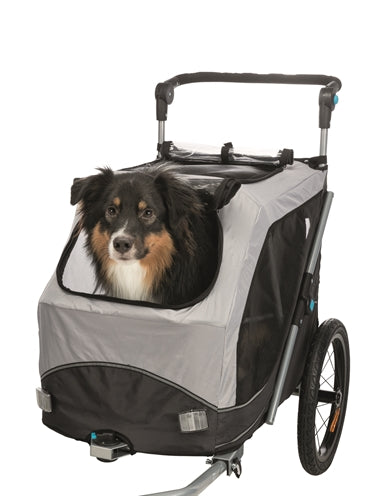 De Trixie Hondenfietskar Opvouwbaar Grijs 90X63X95 cm is een handige kar die van alle gemakken voorzien is om jouw hond mee te nemen op fietstochten.