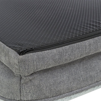 De Trixie Vital Hondenmand Lino Hoekig Grijs/Lichtgrijs is een orthopedische mand van chenille/zacht pluche die speciaal ontworpen is om jouw huisdier het ultieme slaapcomfort te bieden. Met een hoogwaardig 2-lagen-systeem van comfortschuim en visco-elastisch schuim (memory foam) past de mand zich perfect aan het lichaam van je huisdier aan, voor optimale ondersteuning en ontspanning. De bekleding van deze hondenmand is afneembaar en de onderkant is slipvast.